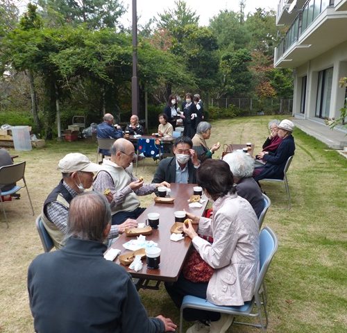 中庭で焼き芋の会!2025.11.12秋の恒例「焼き芋の会」を中庭で開催しました。 朝から炭火をおこして、職員がお芋をじっくり焼き上げてご提供しました。ほくほくのお芋は甘くてとっても美味しいと大好評!ちょっと寒さを感じる日でしたが、湯気の立つ焼き芋を手に、皆さん笑顔いっぱいのひとときでした。 お知らせ一覧へ